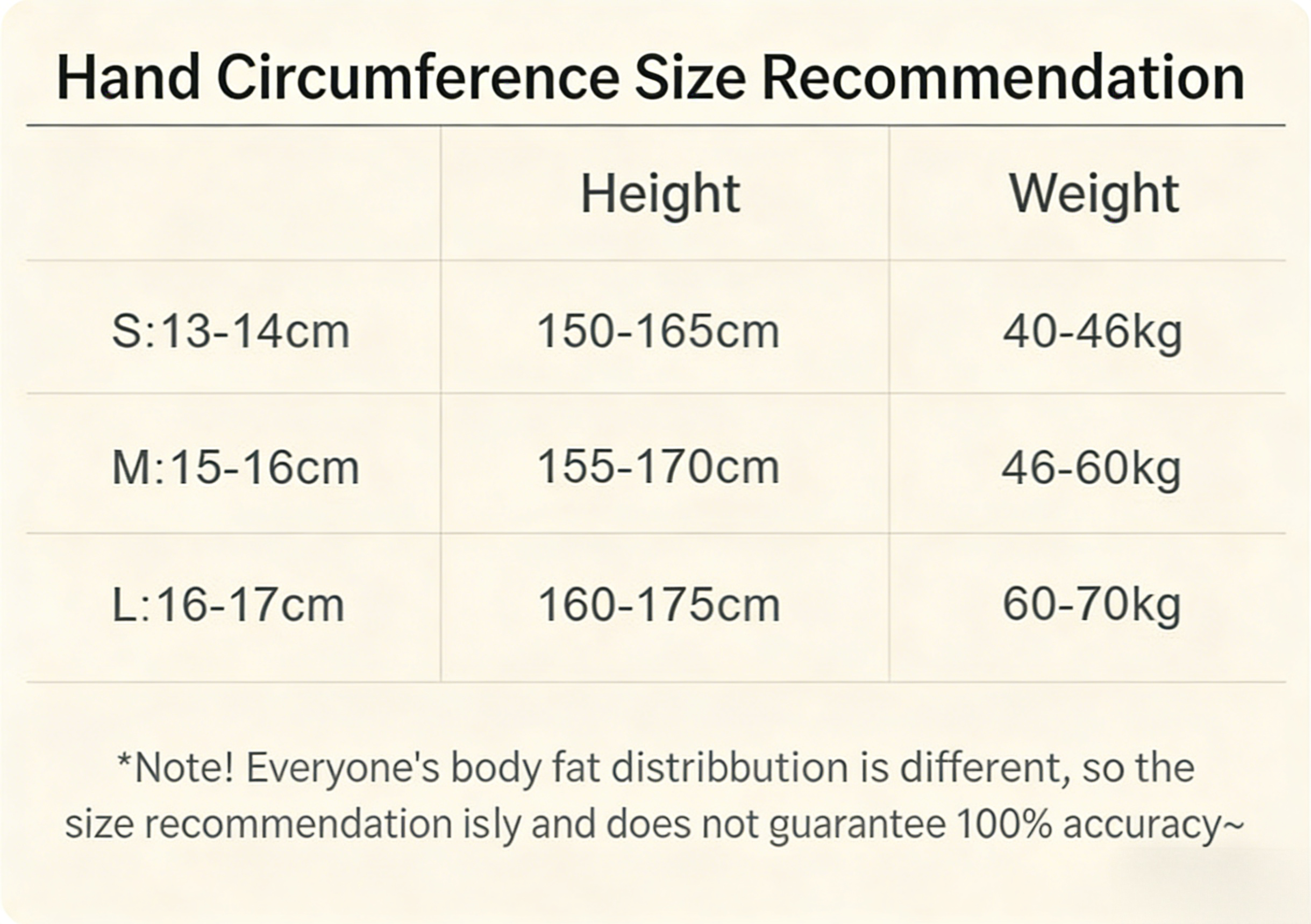 Choose Your FitMatch your wrist circumference to the chart below, selecting your preferred fit style for the most comfortable wear.