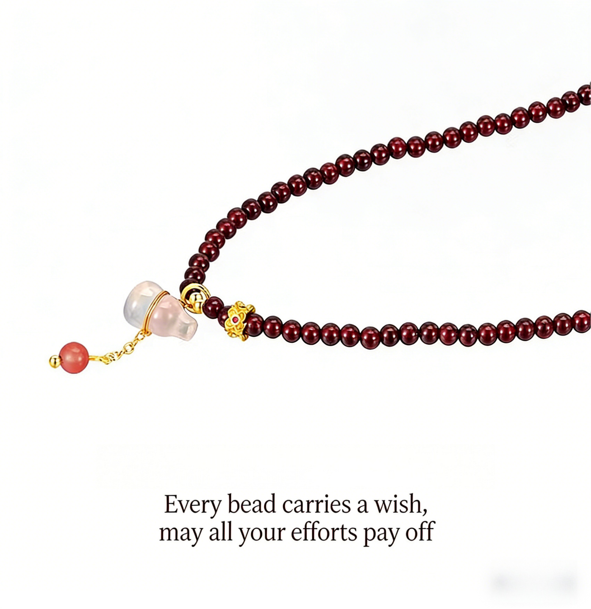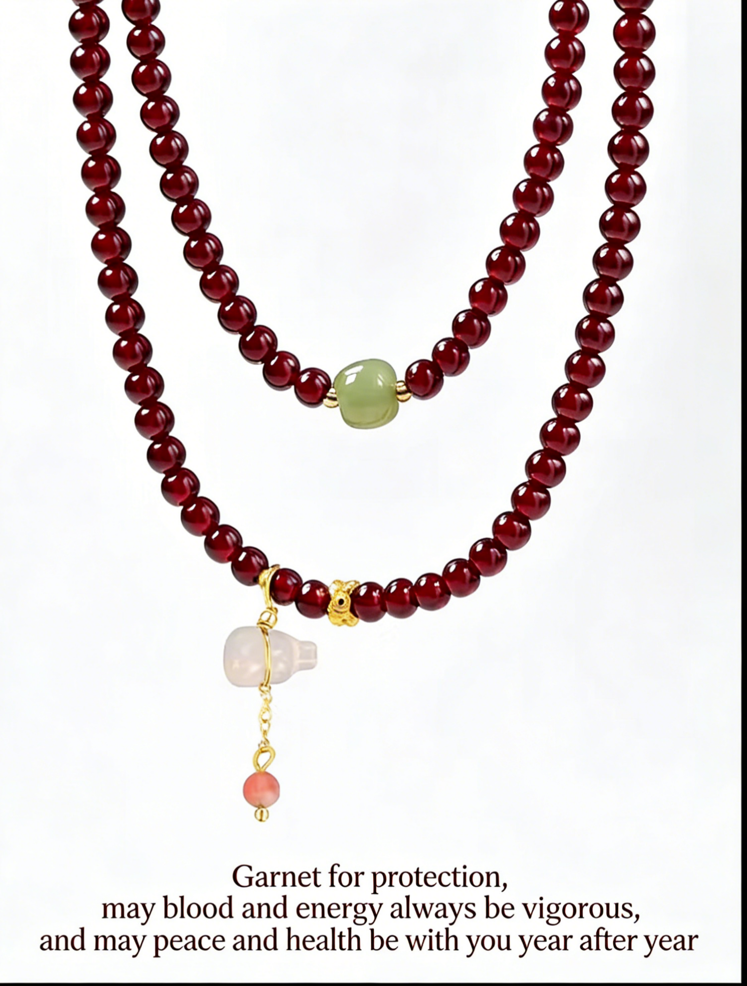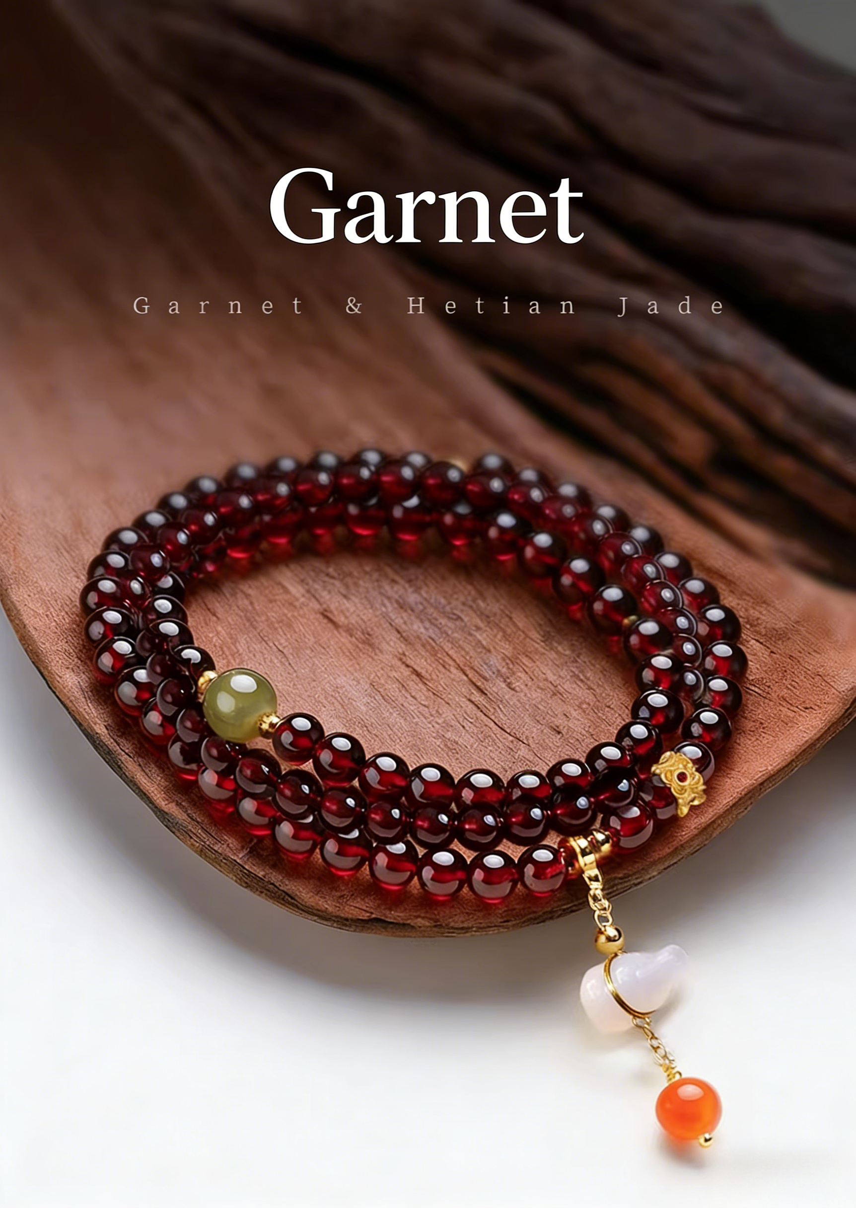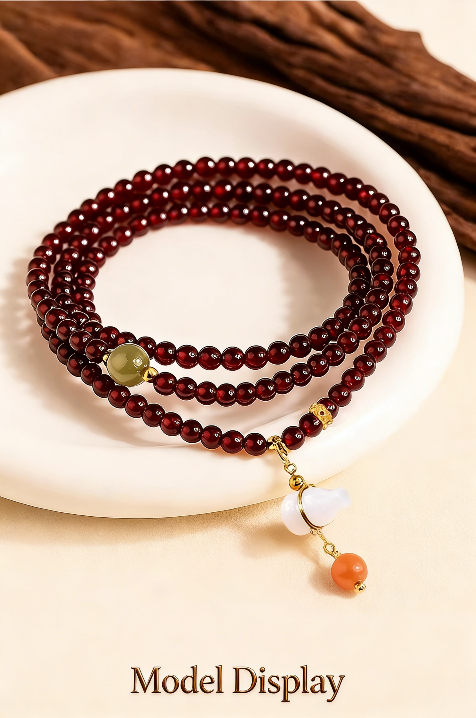 天然石榴石珠串手鏈,搭配吉祥葫蘆吊飾 | 用於財富顯化與祝福好運,低調奢華珠寶