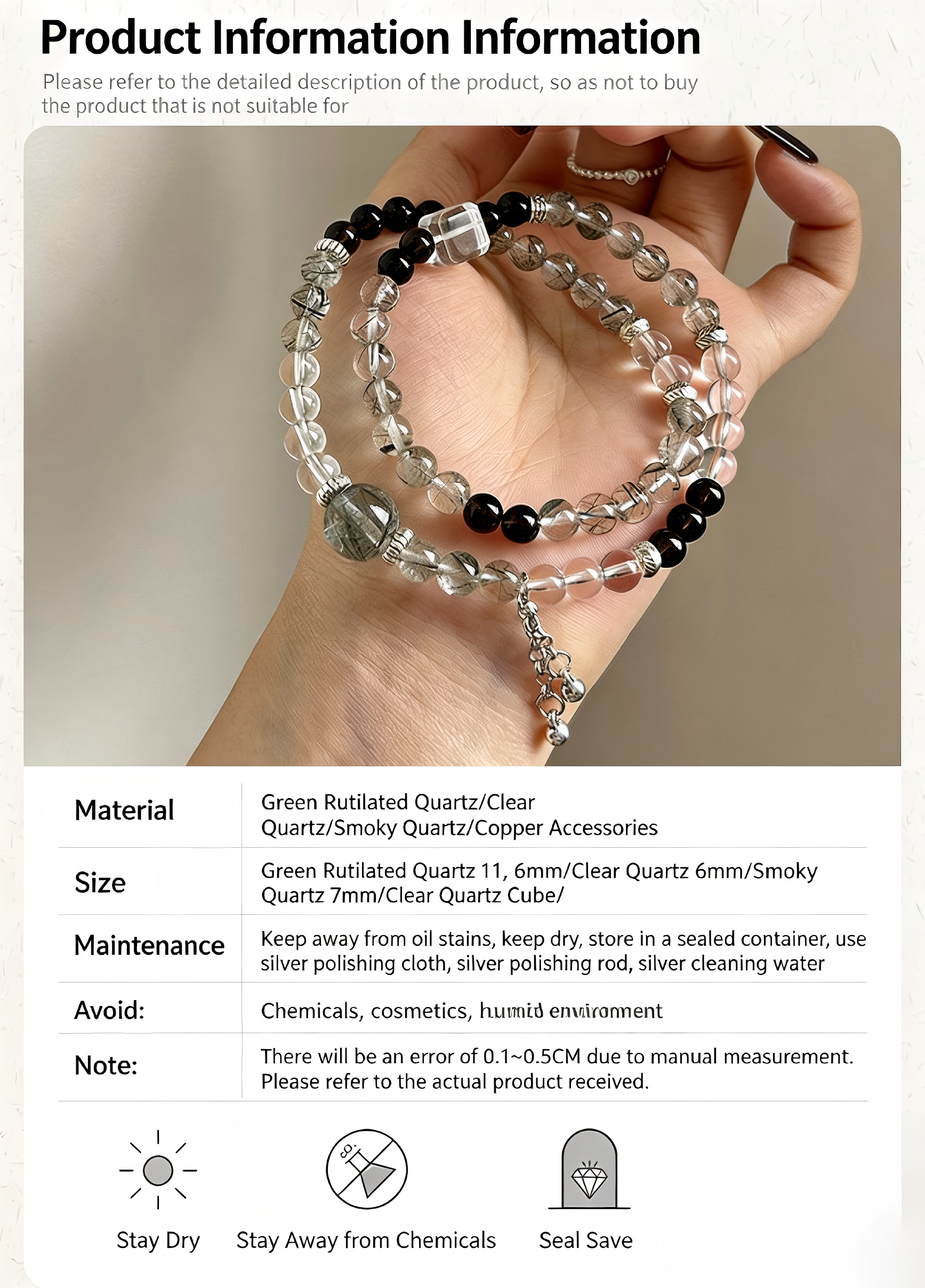 天然綠色針狀水晶雙層手鍊,禪意與新中式,女性白水晶珠寶